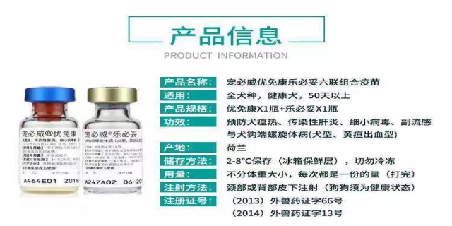 现在一般犬六联苗包括犬瘟热、腺病毒病2型、副流感病毒、细小病毒、犬钩端螺旋体、犬冠状病毒。现在宠物医院有美国辉瑞的卫佳捌和法国梅丽亚的优乐康两种品牌的六联疫苗。除此之外,还有二联疫苗、四联疫苗、八联疫苗。