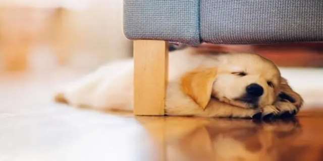 狗狗四脚趴地睡跟四脚朝天睡就形成鲜明的对比了!四脚趴地睡的狗狗往往比较温柔小心,也是非常害羞的。